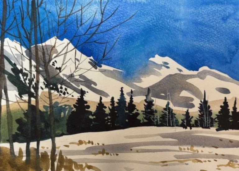 Trees in Winter Landscape: Watercolor Class with Artist Hazel Jarvis