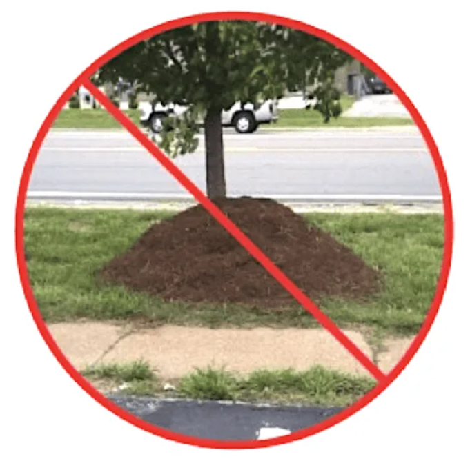 - The location of trees to each other is very important because trees protect each other. Extensive clearing of trees weakens and can kill more than just the trees that are removed. Trees also can be weakened by landscape work which is not done properly. For example. trees can suffer when weed-whacking devices damage the trunks of trees or when mulch is improperly applied creating mulch “volcanoes.”